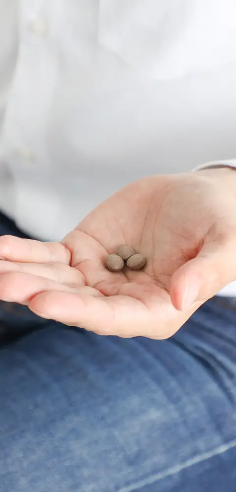 目安の摂取量は1回3粒、1日に2回(合計1日6粒)を、1日のうちで食事量が多い食事の前に水または白湯でお飲みいただくのがおすすめです。
