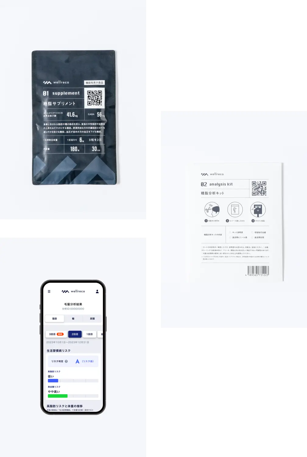 • 毎回「糖脂サプリメント」3袋と「糖脂分析キット」1個をセットでお届けします。